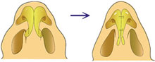 ![]() 鼻筋が通っていない人は、隆鼻術と同時にできる人工軟骨を利用する方法が適しています。 鼻は充分高いという人は、鼻翼軟骨を処理する方法になります。 鼻尖形成術(軟骨の形成により鼻先を小さくする)![]() 鼻尖形成術(プロテーゼ、軟骨移植により鼻先を小さくする)![]() |